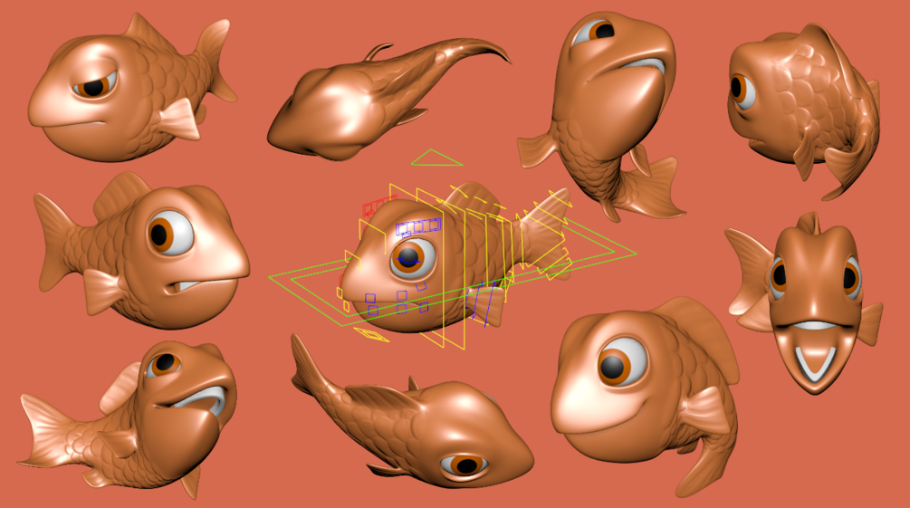 Includes a sine wave control on the tail which can be used to automate a swimming motion. Change the sine amplitude's value on the root control and scrub through the timeline to see the tail flapping!